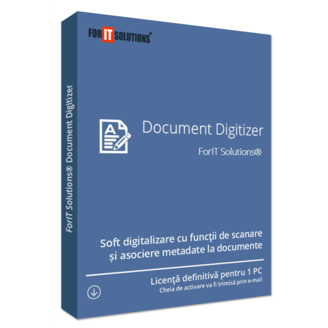 Pentru fiecare calculator unde se dorește instalarea și utilizarea aplicației software ForIT Solutions® Document Digitizer, este nevoie de o licență, care este definitivă, valabilă doar pe calculatorul instalat, pentru versiunea achiziționată.